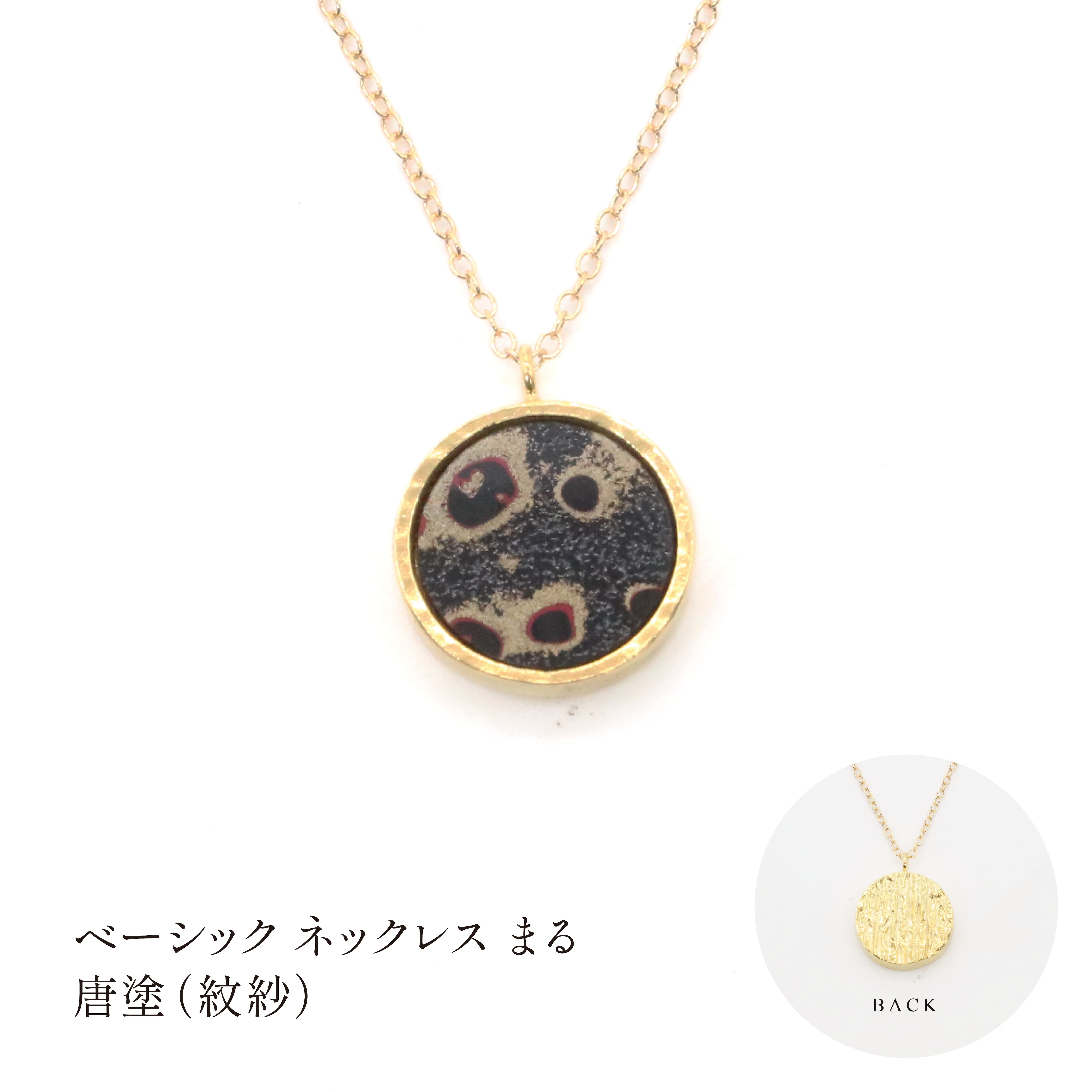 気取らずに普段使いできる「いつものアクセサリー」として、シンプルで小さめの丸のデザインに、漆塗り(津軽塗)を組み合わせたネックレスです。
